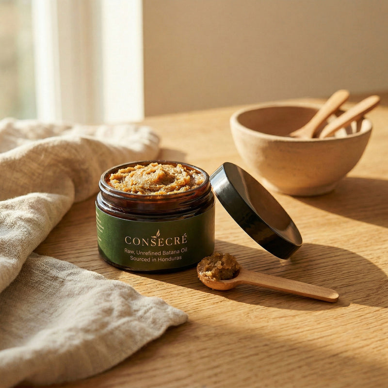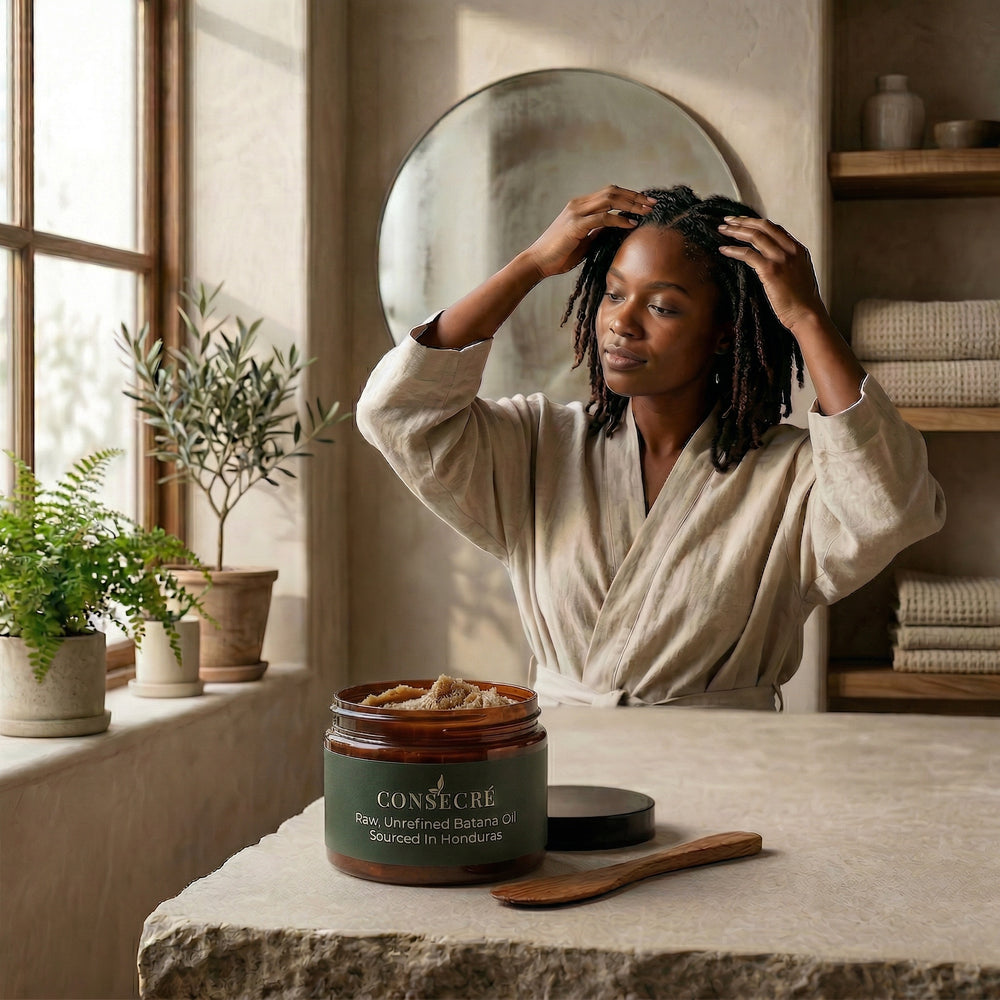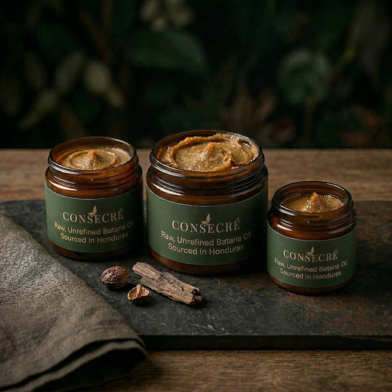 Sustainably sourced Batana oil from Honduras, cold-pressed to nourish, restore, and elevate your hair naturally.